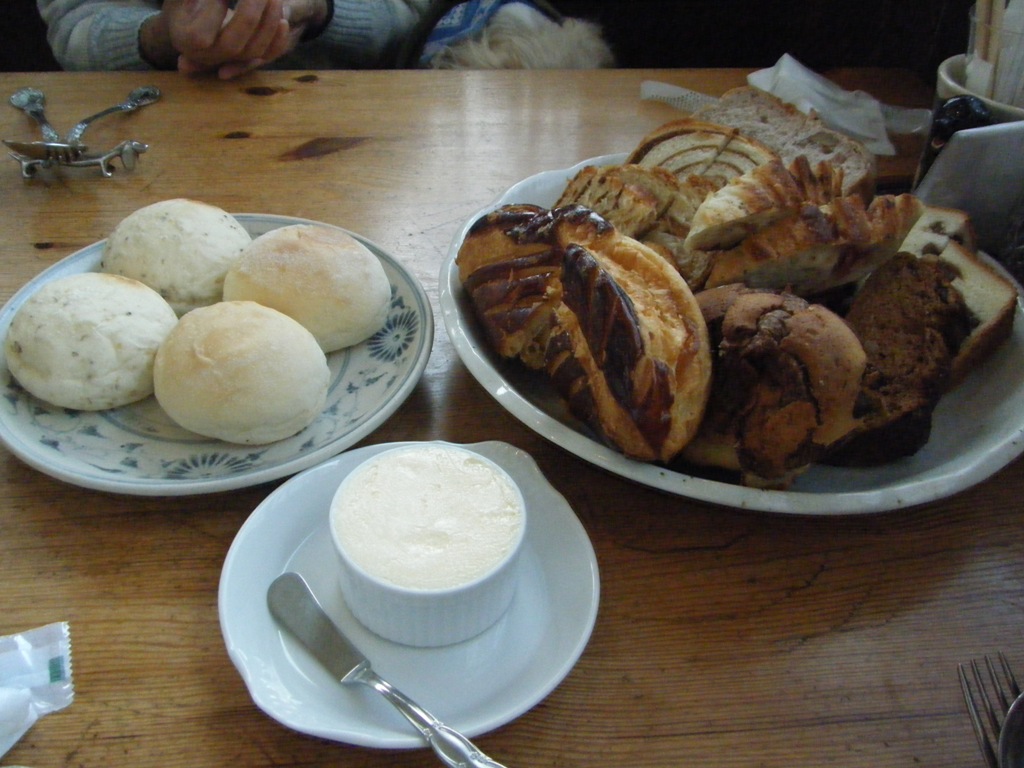 おかずのプレートに、向かいにある人気店「PENNY LANE」(ペニーレイン)のパンです。
