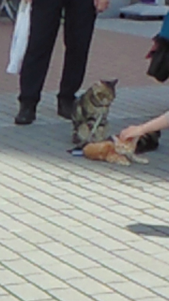 その後、伊勢丹広場で、猫3匹をリードをつけて散歩させているオジサンを発見。(^o^)